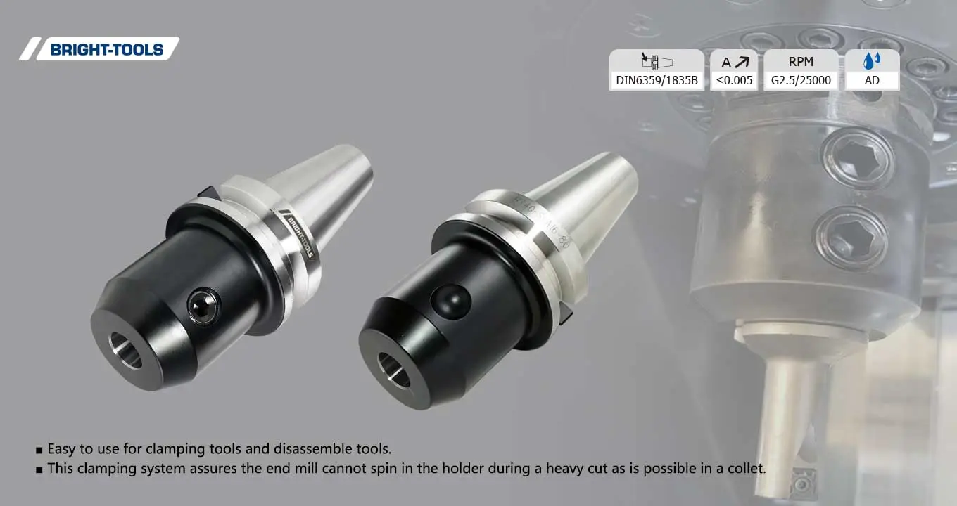 Держатели концевых фрезов BBT удерживают режущие инструменты с большей жесткостью, чем цанги.